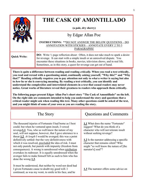 Read The Cask Of Amontillado Questions And Answers Kindle Editon